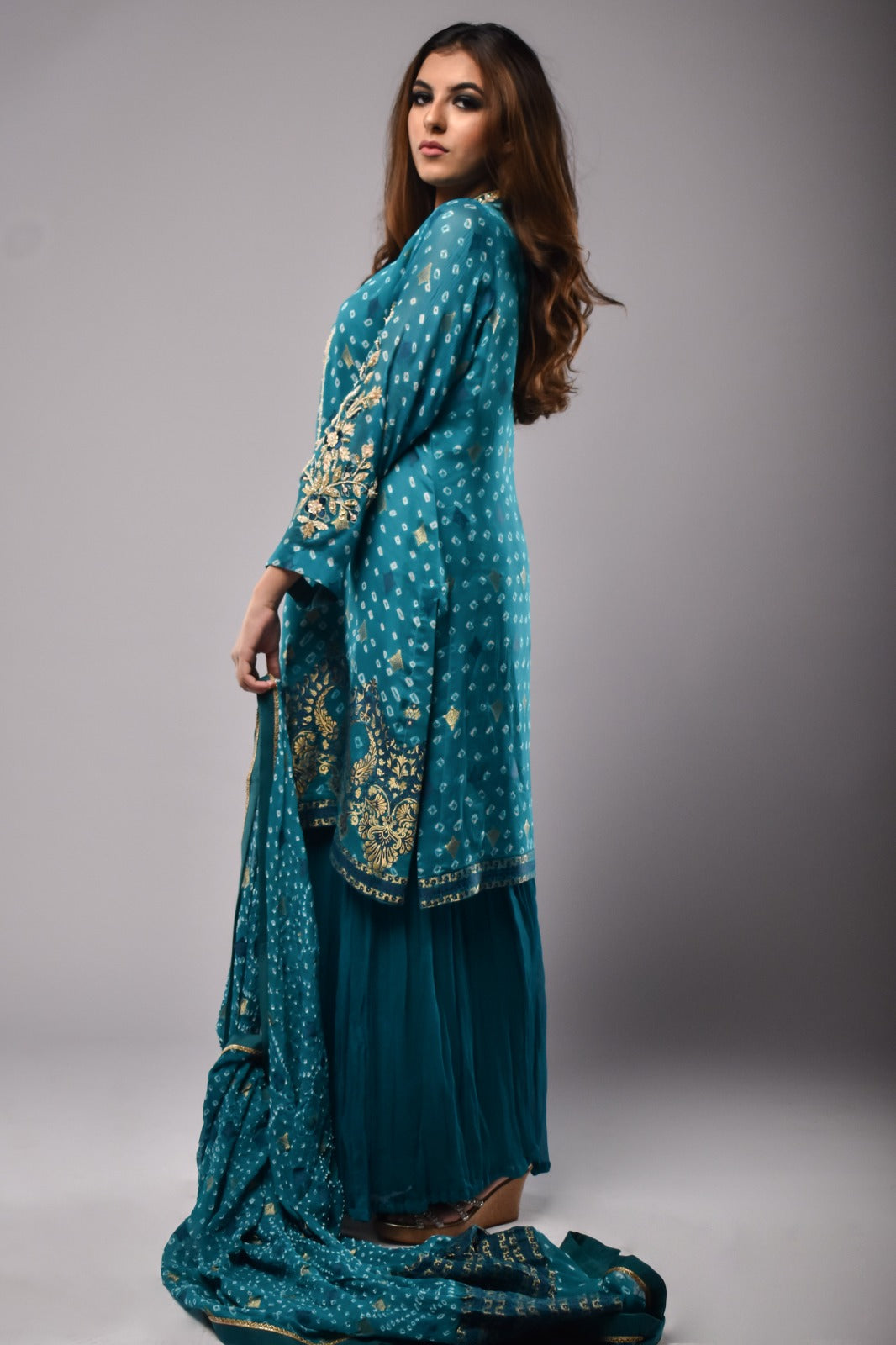 Elegant Burgundy Traditional Outfit with Gold Embroidery and Lime Green sides